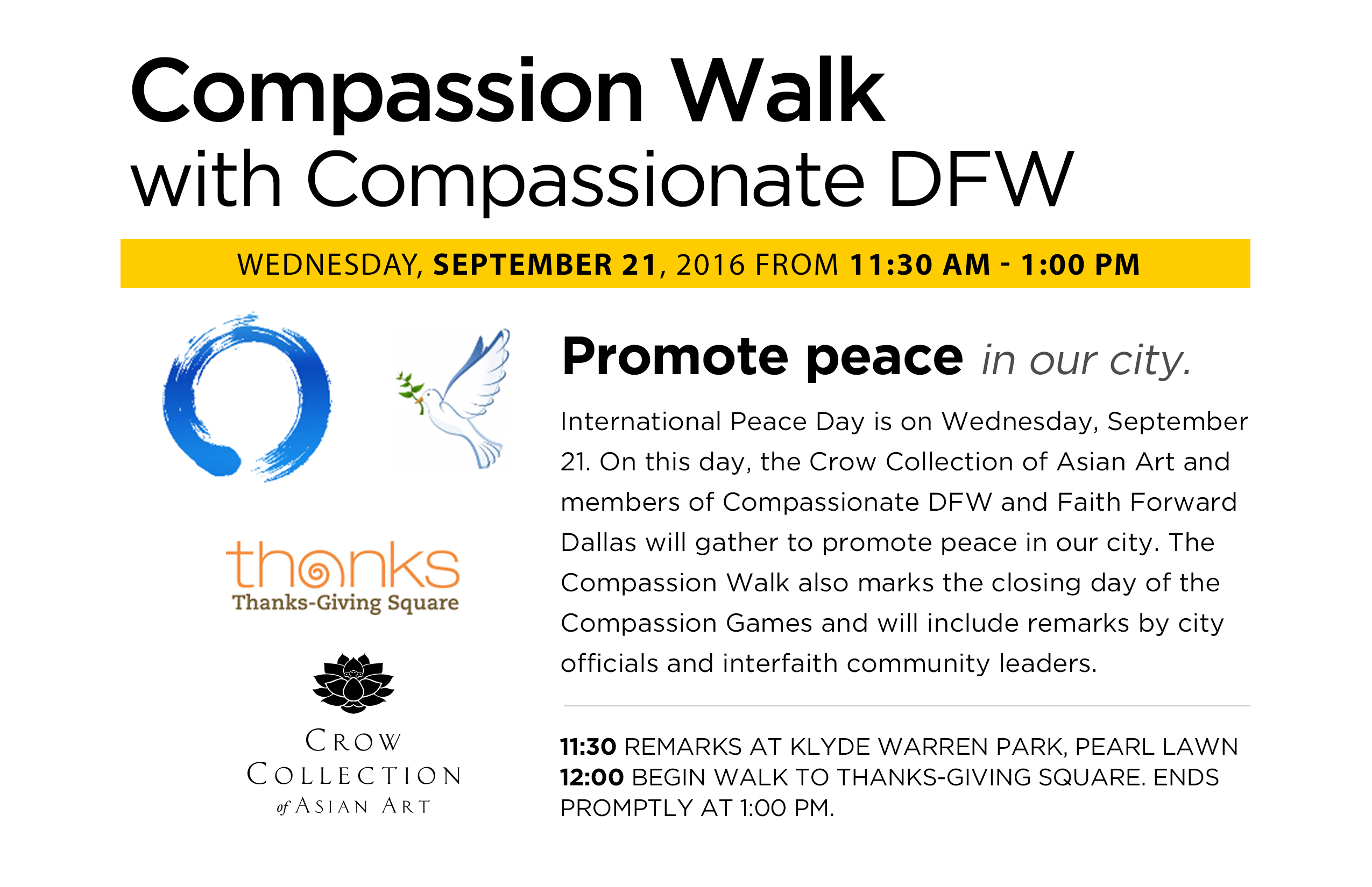 Printable Flyer to Share: https://www.compassionatedfw.org/wp-content/uploads/2016/09/SinglePage-CompassionWalkFlyer.jpg